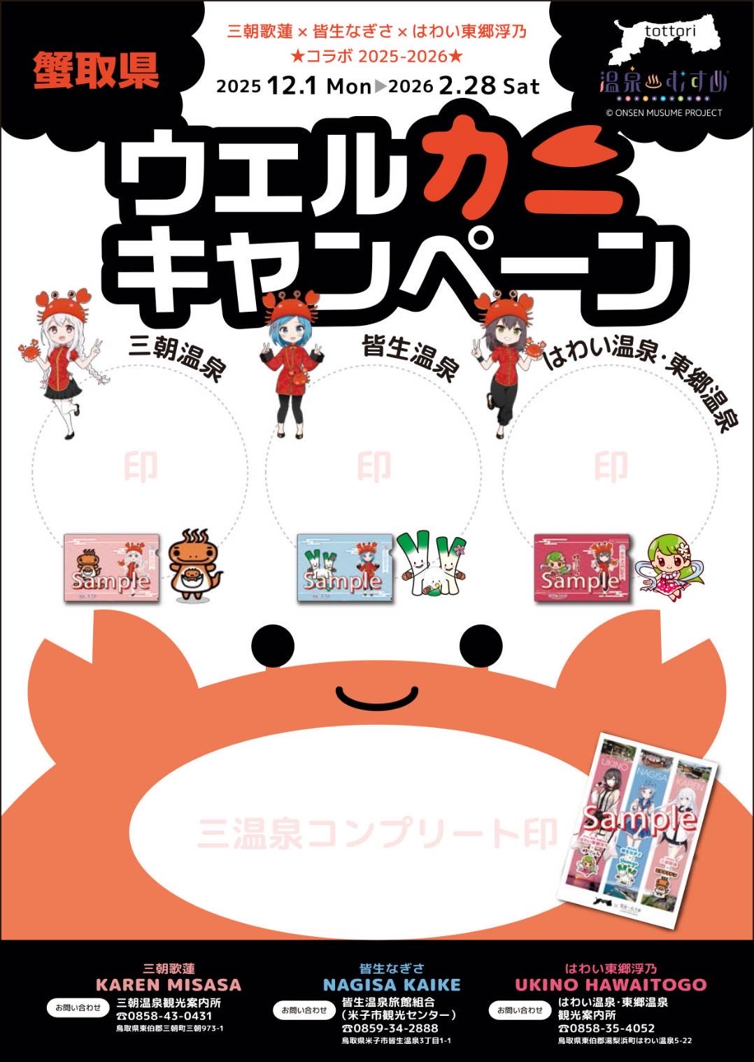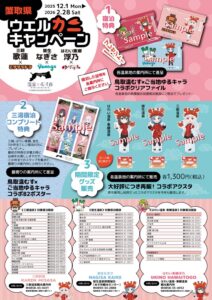 3、三湯コンプリート特典:鳥取温むす×ご当地ゆるキャラコラボB2ポスタープレゼント